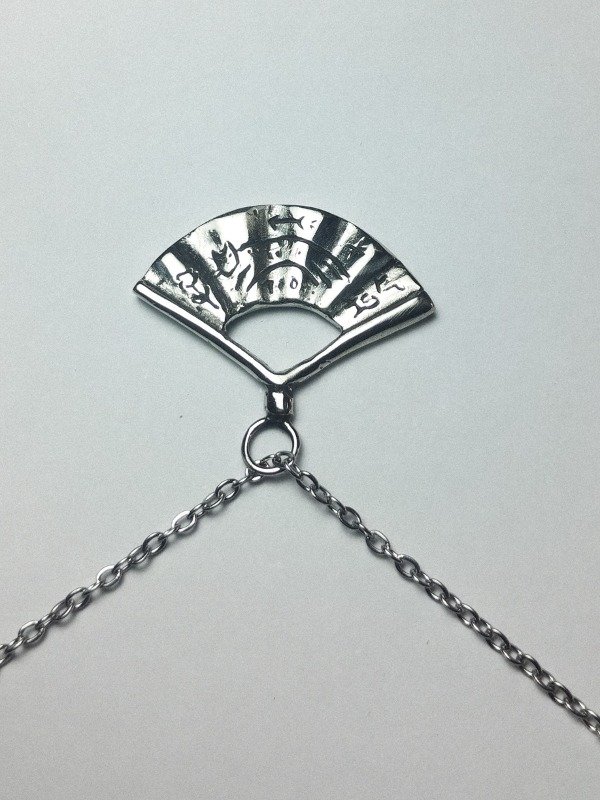 ✦Dije modelado a mano en cera y fundido en bronce (dorado), plata o alpaca (plateado). Tiene distintos grabados en ambas caras del abanico.✦